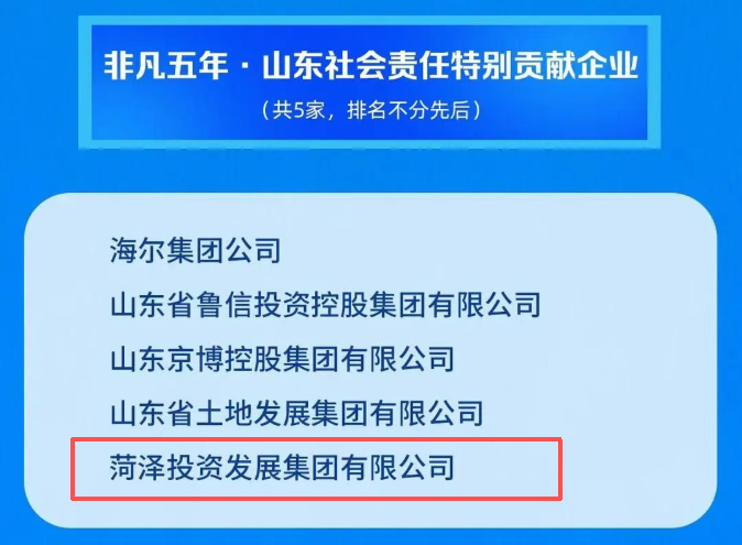 菏泽投资集团获评“非凡五年·山东社会责任特别贡献企业”荣誉